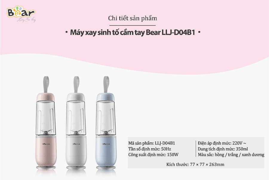 Kết luận: Từ những phân tích trên, bạn đã biết mình nên lựa chọn chiếc máy xay sinh tố mini Bear nào rồi chứ? Nếu như đề cao tính tiện dụng, nhỏ gọn, cần sử dụng máy ở bất cứ đâu, cầm tay mang đi nhiều nơi thì Bear LLJ-B03C1 là chiếc máy hoàn hảo dành cho bạn.