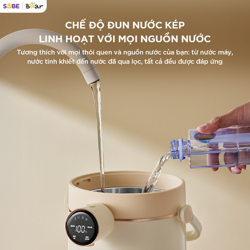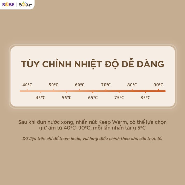 Không còn cảnh “ước lượng” nhiệt độ, với Bình thuỷ điện Bear 3L EWB-5H30C60 có thể tùy chỉnh dễ dàng từ 40°C đến 100°C, đáp ứng mọi nhu cầu sử dụng nước nóng. Mẹ bỉm dễ dàng pha sữa cho con mà không lo ảnh hưởng đến dinh dưỡng, ông bà pha mật ong, bố uống cà phê… chưa bao giờ tiện lợi đến thế. Sau khi đun sôi, bình sẽ tự động chuyển sang chế độ giữ ấm, giúp luôn có nước nóng sẵn sàng để sử dụng.