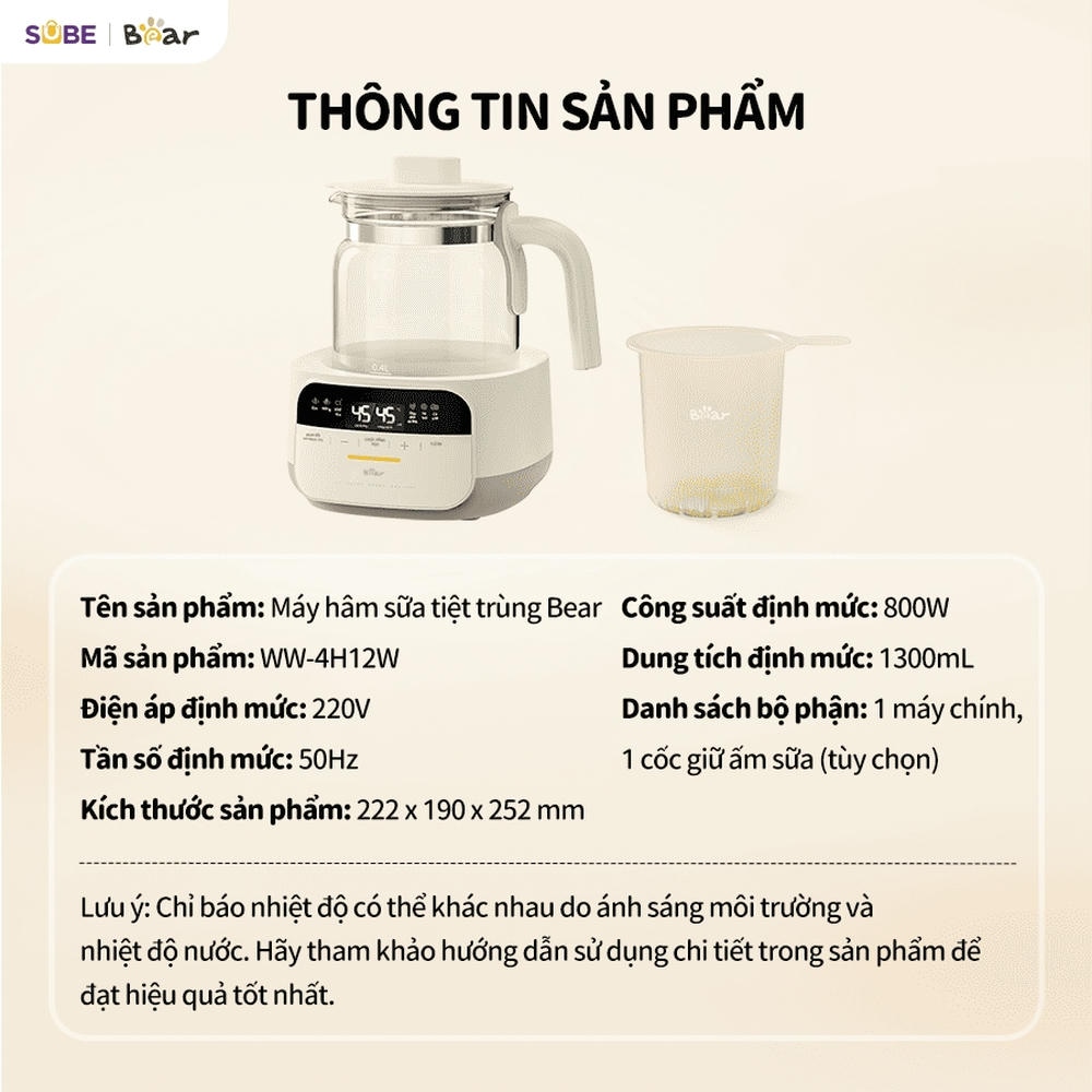 Máy đun nước hâm sữa 1.2L Bear WW-4H12W sẽ là trợ thủ đắc lực cho bạn trong việc chăm sóc bé yêu và gia đình của mình. Hãy liên hệ bearvietnam.com.vn để có ưu đãi tốt nhất nhé!