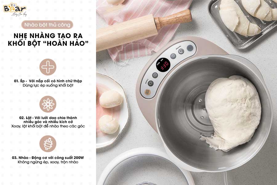 Chiếc máy trộn bột Bear 5L sở hữu nhiều tính năng đặc biệt, giúp bạn có thể nhào ủ bột một cách dễ dàng, nhanh chóng và hiệu quả.
