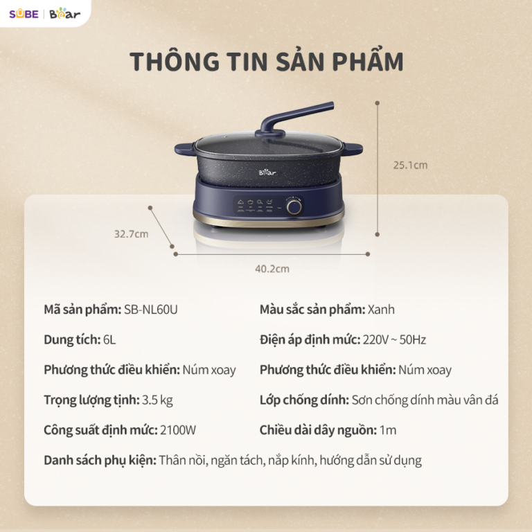 Đặc điểm nổi bật của nồi lẩu Bear SB-NL60U