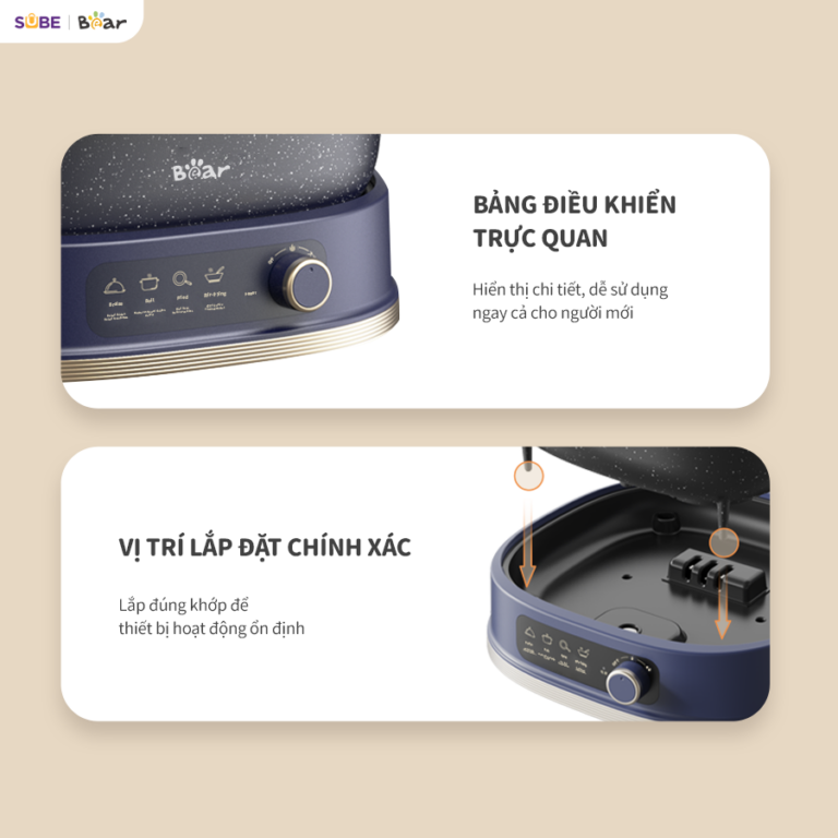 – Chỉn chu trong từng chi tiết: Bear luôn mong muốn đem đến cho người dùng trải nghiệm tuyệt vời nhất, thông qua từng chi tiết thiết kế của nồi lẩu. Với phần thân nồi được thiết kế cố định, tích hợp khả năng bảo vệ người dùng tránh khỏi trường hợp rơi vỡ. Nắp vung nồi có thể dựng đứng, tránh làm bẩn bàn khi đang ăn. Thiết kế lỗ xả hơi nhanh, tránh trường hợp bị bỏng trong quá trình sử dụng. Miếng lót chân chống trượt, giúp ổn định nồi.