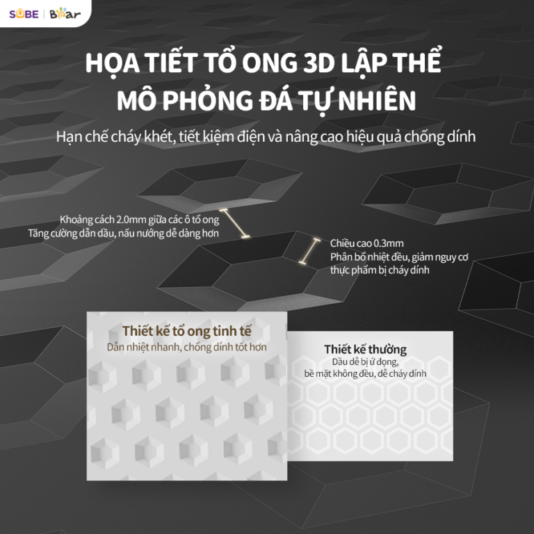✔️ Đáy nồi chống dính nhờ hoa văn in nổi 3D