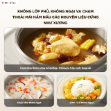 Ngoài ra, nồi được trang bị 2 cảm biến NTC nhiệt độ đặt ở nắp và đáy, giúp kiểm soát nhiệt chính xác trong suốt quá trình nấu. Cơ chế gia nhiệt 3D đảm bảo nhiệt lượng được phân bố đều khắp lòng nồi, giúp cơm chín đều từ trong ra ngoài, không còn tình trạng chín không đều hoặc cháy đáy.